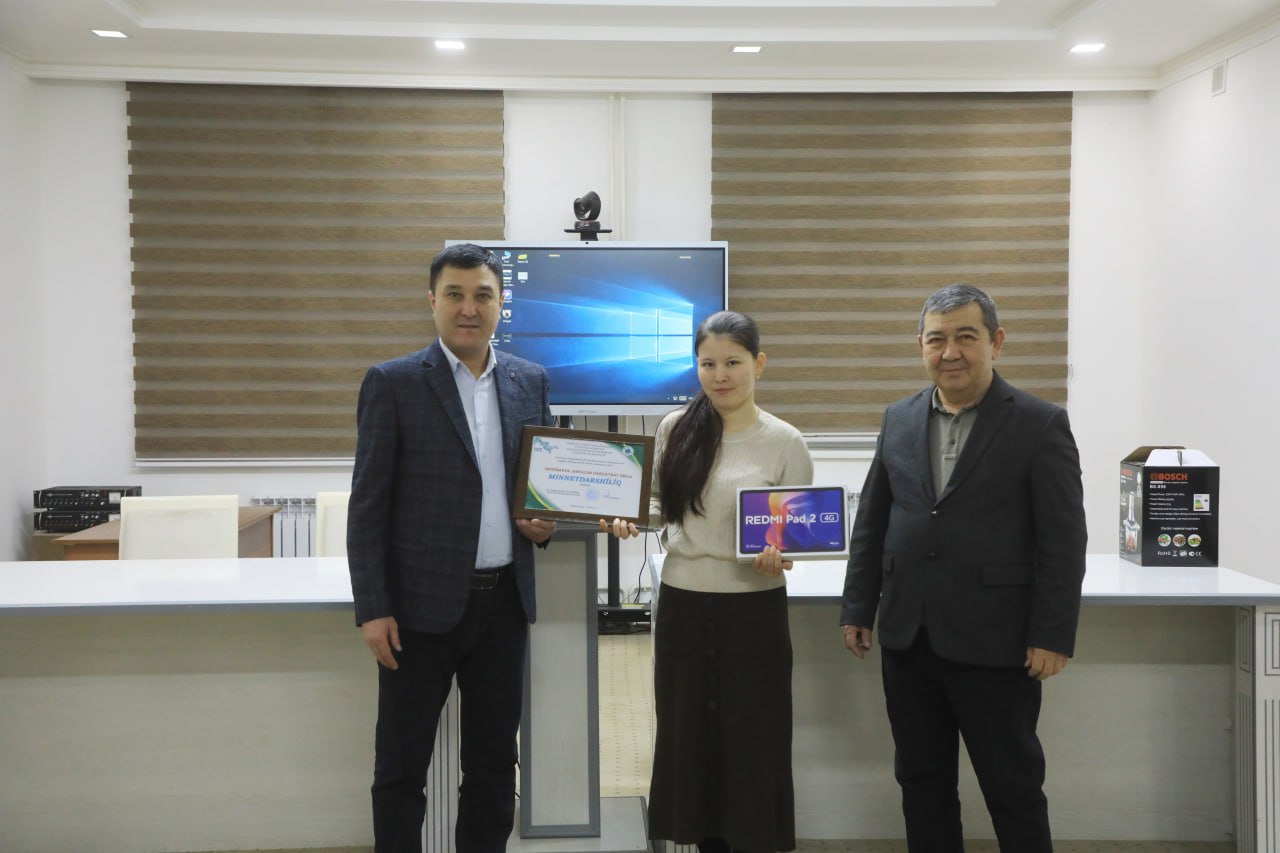Tańlaw nátiyjelerine bola, Taxtakópir rayonı "A.Adilov" APJ puqarası Qıdırbaeva Jansulıw Dáwletbay qızı jeńimpaz dep tabılıp, planshet hám basqa da bahalı sawǵalar menen sıylıqlandı.
