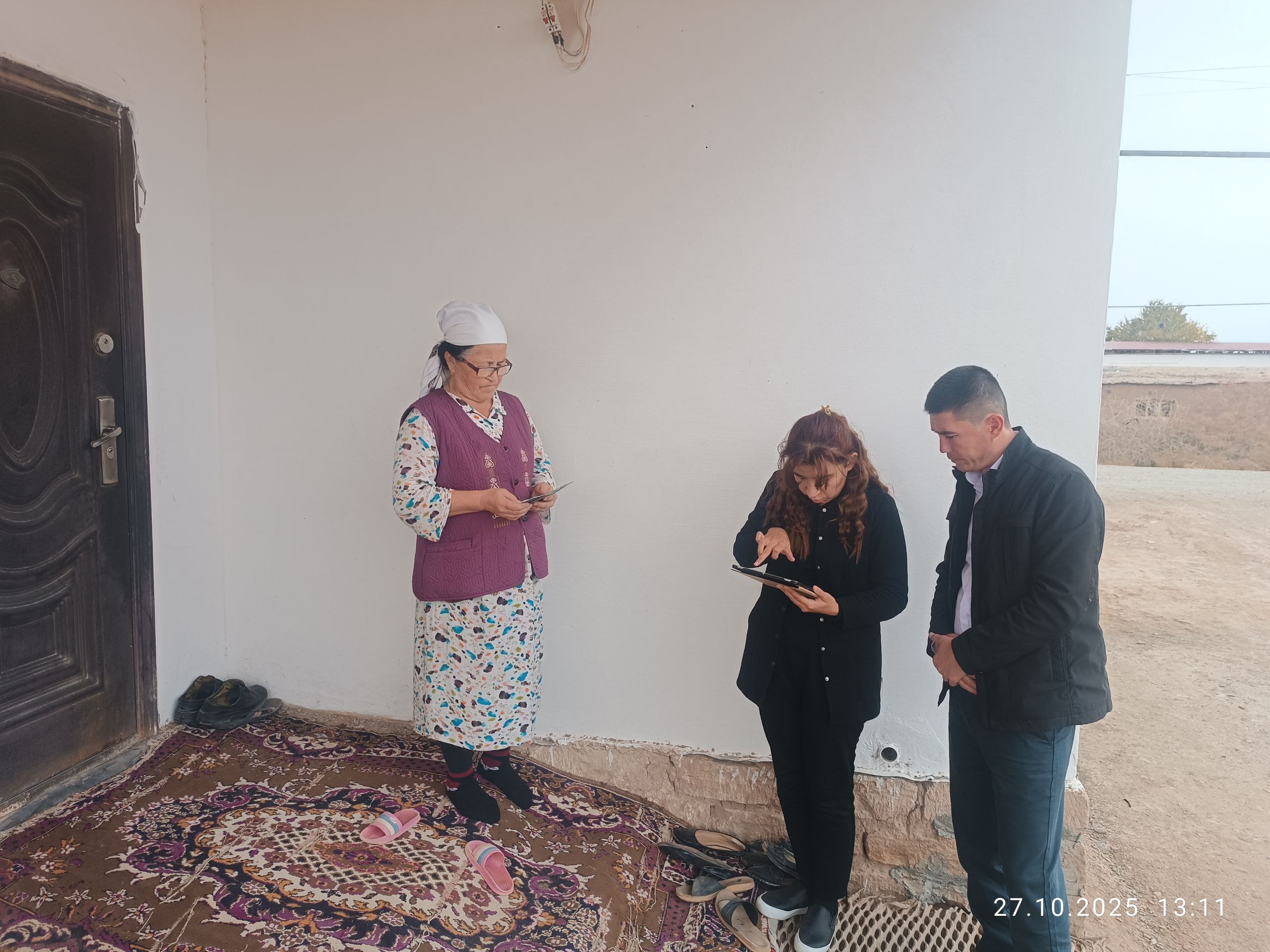 Usı processte máhálle jetiligi hámde juwapker xızmetkerler tárepinen hár bir shańaraqtaǵı xalıq sanı, jasaw sharayatı hámde awıl xojalıǵındaǵı jer hám sharwa resursların anıqlamaqta.