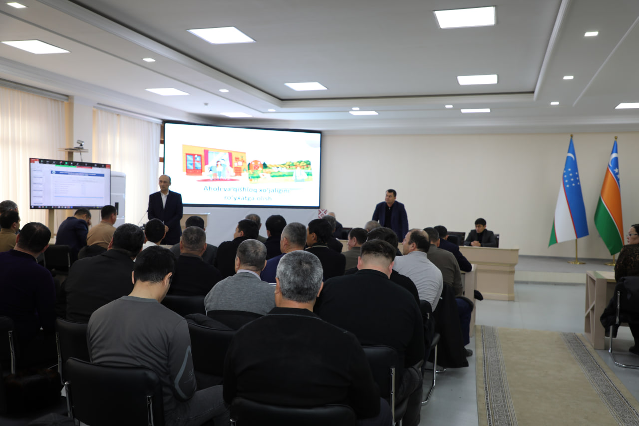 Ózbekstan Sawda-sanaat palatası Qaraqalpaqstan Respublikası basqarmasında xalıqtı hám awıl xojalıǵın dizimge alıw ilajların sapalı, puqta hám belgilengen múddetlerde shólkemlestiriw hám ótkeriwdi támiyinlew maqsetinde Qaraqalpaqstan Respublikasınıń qala hám rayonlarında jumıs alıp barıp atırǵan fermerler keńesi aǵzaları ushın seminar-trening shólkemlestirildi.