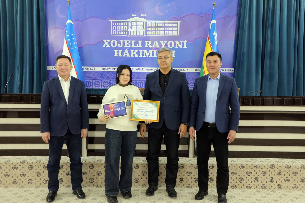 Bárshemizge belgili usı jıldıń 15-yanvar sánesinen baslap elimizde xalıqtı hám awıl xojalıǵın dizimge alıw ilájlarına rásmiy túrde start berildi. Milliy statistika komiteti tárepinen bul processte belsendilik kórsetip, sorawnamanı onlayn tárizde durıs hám tolıq toltırǵan puqaralar arasında tańlaw járiyalanǵan edi. Tańlaw nátiyjesine kóre Xojeli rayonı "Sarıshúngil" máhálle puqarası Shamuratova Feruza Saburovna jeńimpaz dep tabıldı hám zamanagóy planshettiń iesine aylandı.