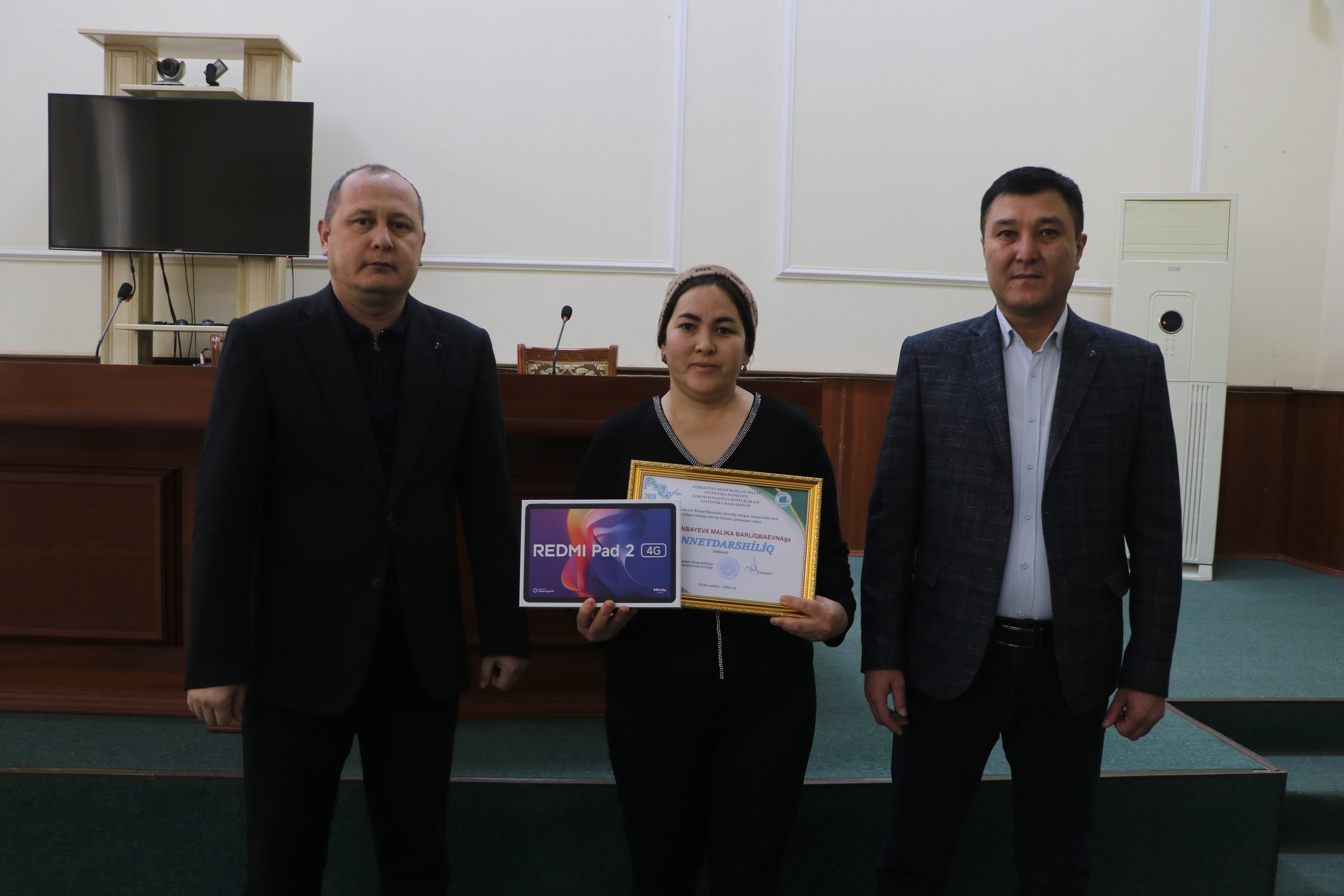 Usı jıldıń 30-yanvar kúni Kegeyli rayonı hákimliginde jeńimpazǵa Qaraqalpaqstan Respublikası statistika basqarması baslıǵı T.Ganiev hám rayon hákiminiń birinshi orınbasarı A.Allambergenov qatnasıwında saltanatlı túrde minnetdarshılıq hámde zamanagóy planshet qurılması sawǵa sıpatında tapsırıldı.