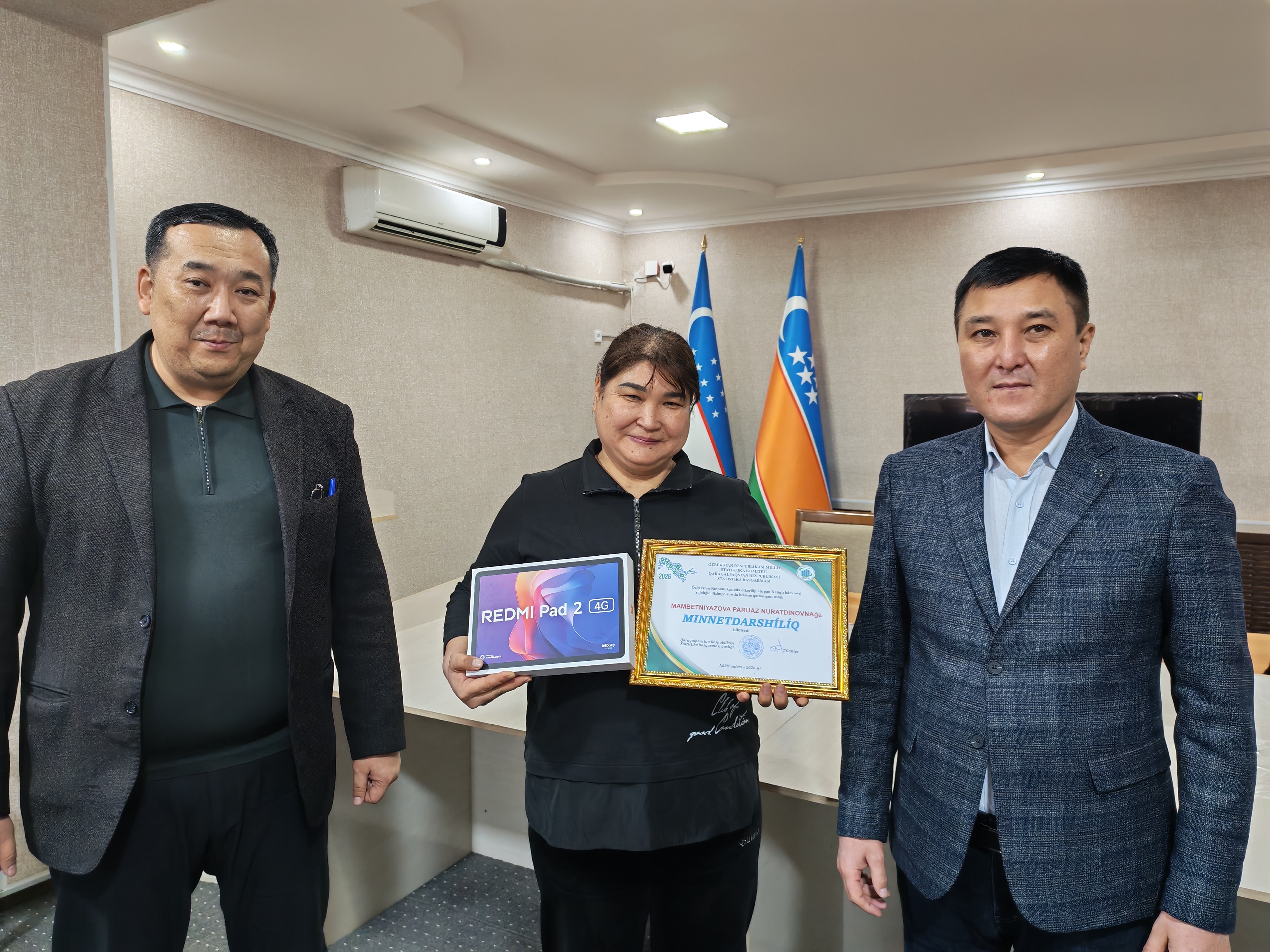 Tańlaw nátiyjelerine bola, Qaraózek rayonı "Qaraózek" APJ puqarası Mambetniyazova Paruaz Nuratdinovna jeńimpaz dep tabılıp, planshet hám basqa da bahalı sawǵalar menen sıylıqlandı.
