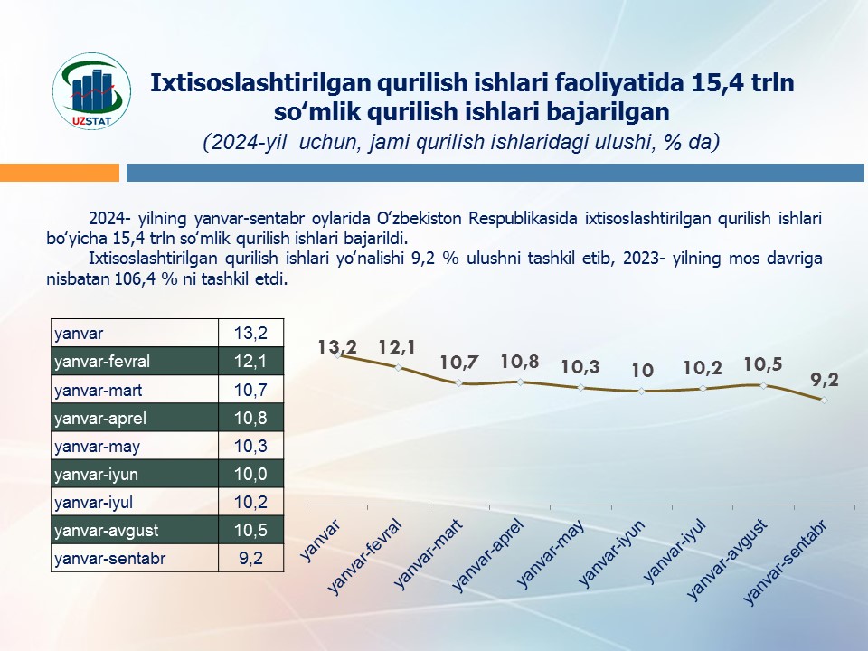 2024- yilning yanvar-sentabr oylariga nisbatan foizda